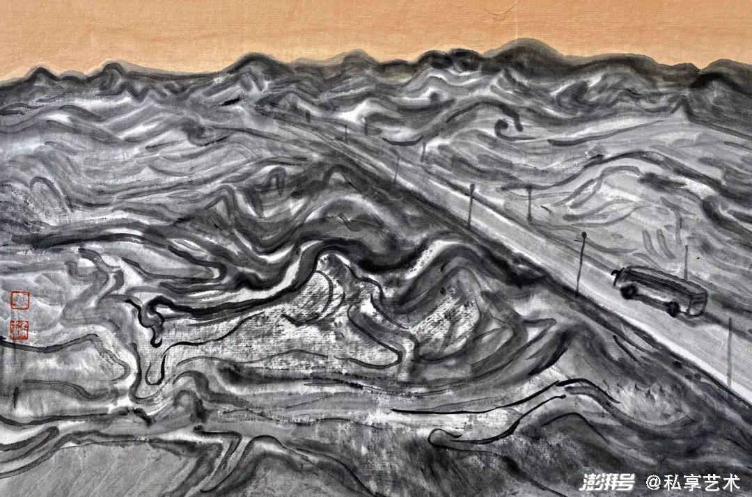 巫卫东《戈壁公路》22x33cm 纸本水墨 2021