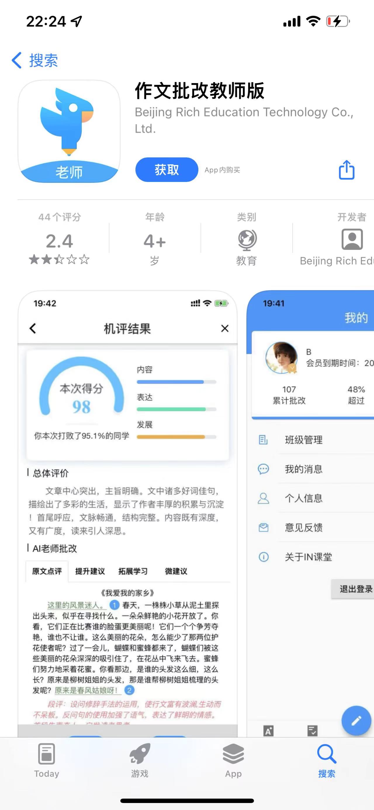“IN课堂”作文批改教师版在iOS平台的介绍页面
