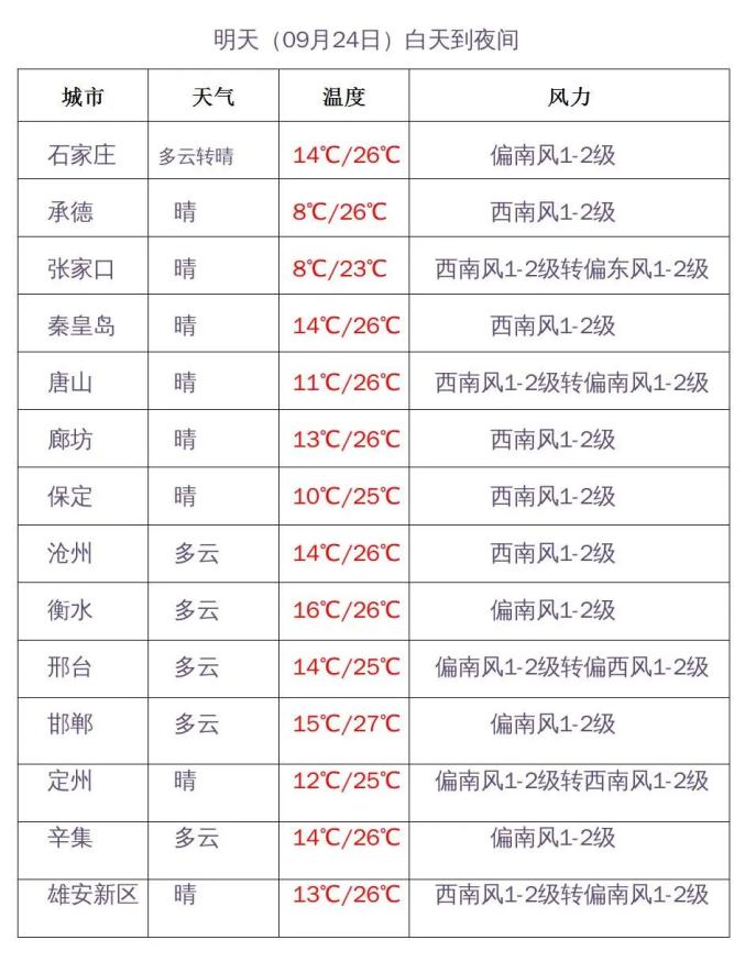 明天夜间到25日,石家庄、沧州及以南地区多云转晴,其他地区晴间多云。