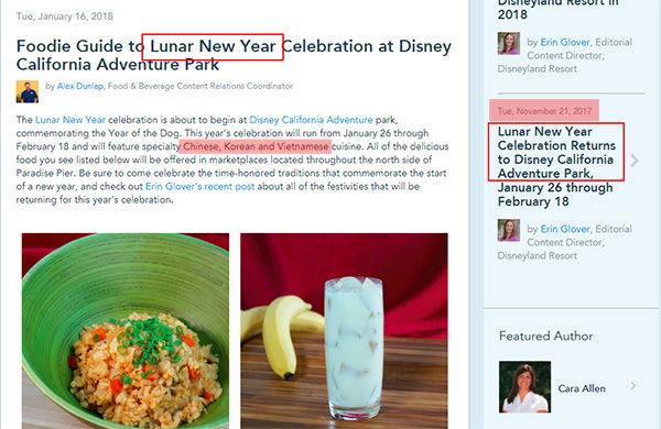 许多位于加州的知名观光旅游景点,例如迪士尼乐园、环球电影城等大多使用“农历新年”作为春节活动的官方称呼,并在服务上顾及非华裔群体的需求,比如提供更有韩式、越南特色的餐饮等,但活动策划仍然有着鲜明的“中国特色”。加州迪士尼针对戊戌狗年展开的春节活动主题是《花木兰》,环球电影城的主题则是《功夫熊猫》。