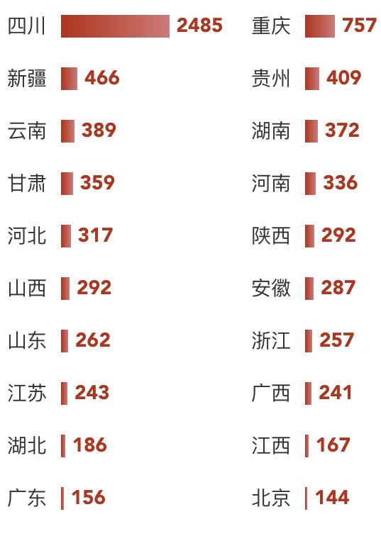 2022级的本科新生中,除四川省的2485人之外,人数最多的三大省级行政区依旧是重庆(757人)、新疆(466人)与贵州(409人)。川大之大,迎天下人。不论你来自哪里,只要相会在川大,从此我们就是一家人。
