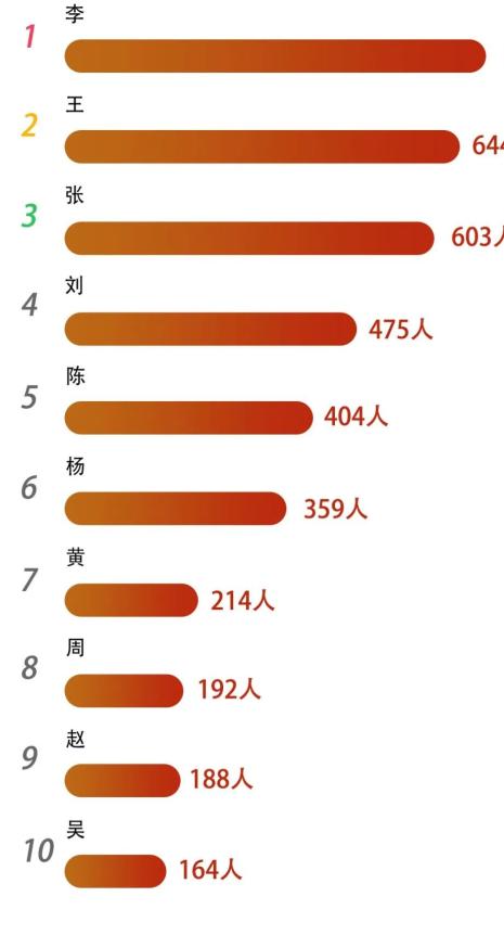 2022级本科新生中,占比人数最多的三大姓氏别为:李(688人)、王(644人)、张(603人)。男生女生看过来