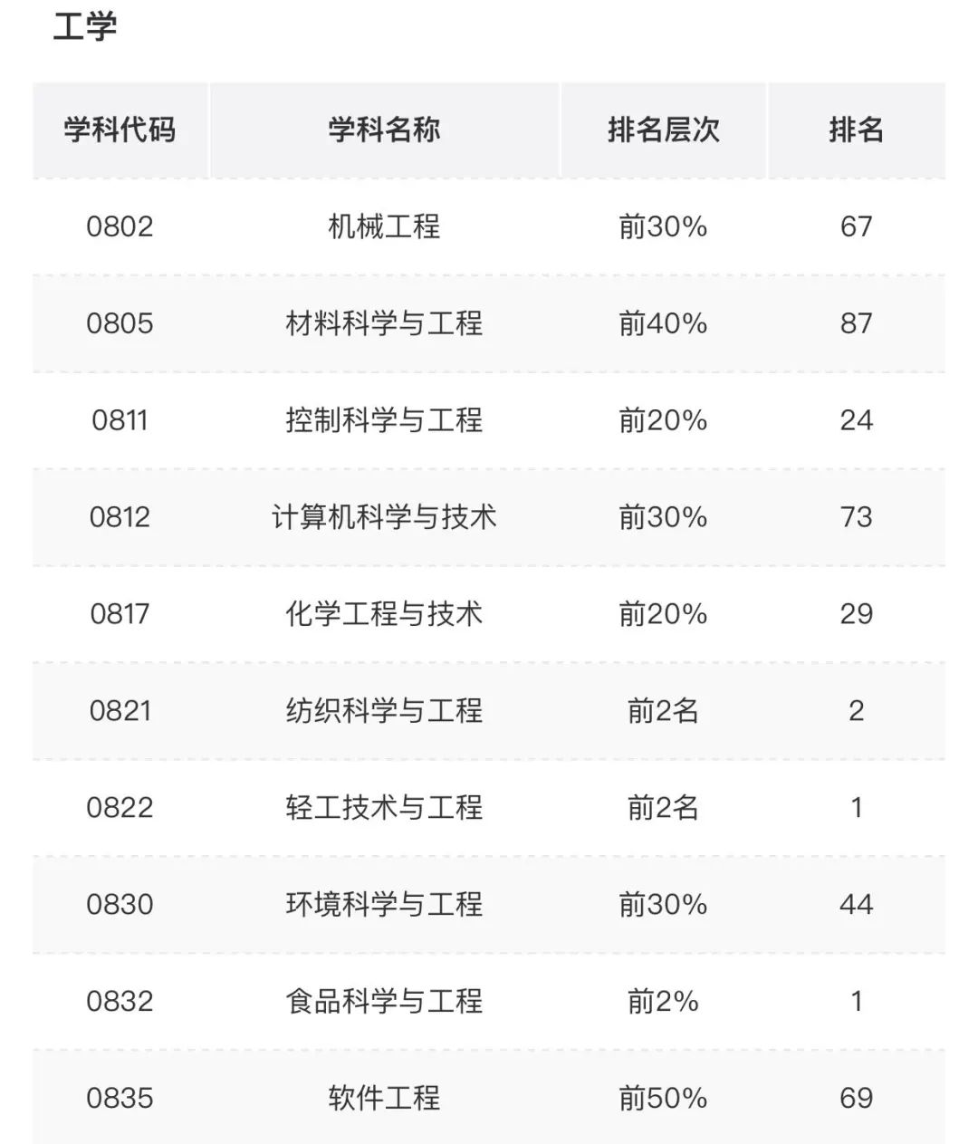 按照上榜学科数量统计江南大学共有20个学科上榜