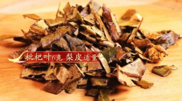 【做法】取适量梨皮和6克枇杷叶,泡茶或煮水代茶饮即可。