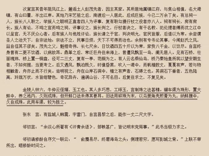 ▲刘廷献《广阳杂记》后来,随着清朝的没落,中国的珍珠养殖业渐趋衰败。鸦片战争后,日本对中国的珍珠养殖进行严格控制,中国的珍珠养殖业一度没落,附壳珍珠的培育技术自此失传。