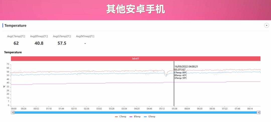 托尼观察了一下发现,原来这台手机的温控调整的非常激进:其它安卓手机,基本上在处理器温度高于 65、66 度的时候,就会开始锁帧降温了,红米 K50 至尊版,也没超过 73 度。