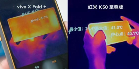 并且由于折叠屏比普通手机厚很多的缘故,发热的中心 SoC 又是处于距离屏幕最远的背面。导致它正面摸起来甚至比 K50 至尊版温度还低,不过边框还是有点烫。