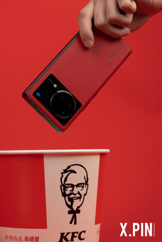 这两天我看着它的背面,总是会生出一股抽离感:一个是肯德基 vivo 50 的梗,让这抹红色有点儿特别。。。