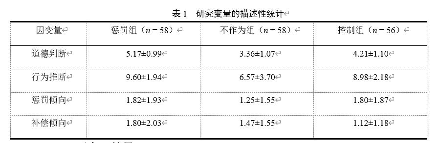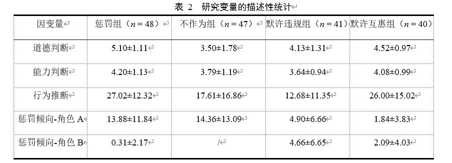 道德判断 采用与研究一相同的测量方法,本研究中该工具的内部一致性克龙巴赫α系数为0.73。