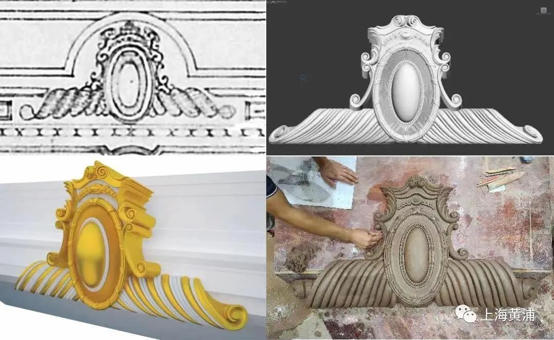 此次对兰心的修缮,秉承着现有结构装饰破坏最少、荷载增加最少的方案,在现有装饰基础上最大范围复原了兰心历史图纸中的室内装饰。矩形镜框式舞台上方中央镶嵌着的装饰山花,就是修缮团队参考影像资料,通过3D建模的方式按原型形制进行翻模、定制。