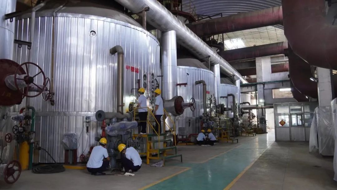 车间内,工人正在维护机器。“树起党旗,凝聚人心,我们充分发挥糖业在脱贫攻坚和推进乡村振兴中的积极作用,深耕和发展来宾糖业,促成农民增收、企业增效、政府增税等多赢局面。”广西东糖投资有限公司副董事长,广西来宾东糖集团有限公司党委书记、董事、副总裁林伟民在车间说道。