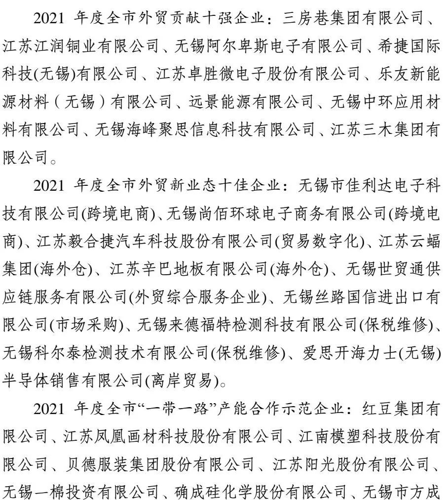 未来,无锡将进一步解放思想、埋头苦干、奋力拼搏,全力稳住外贸外资基本盘,不断加大招商引资力度,加快重大项目落地,努力打造无锡开放发展新优势,奋力谱写“强富美高”新无锡现代化建设新篇章,以实际行动迎接党的二十大胜利召开。原标题:《通 报 表 彰!》