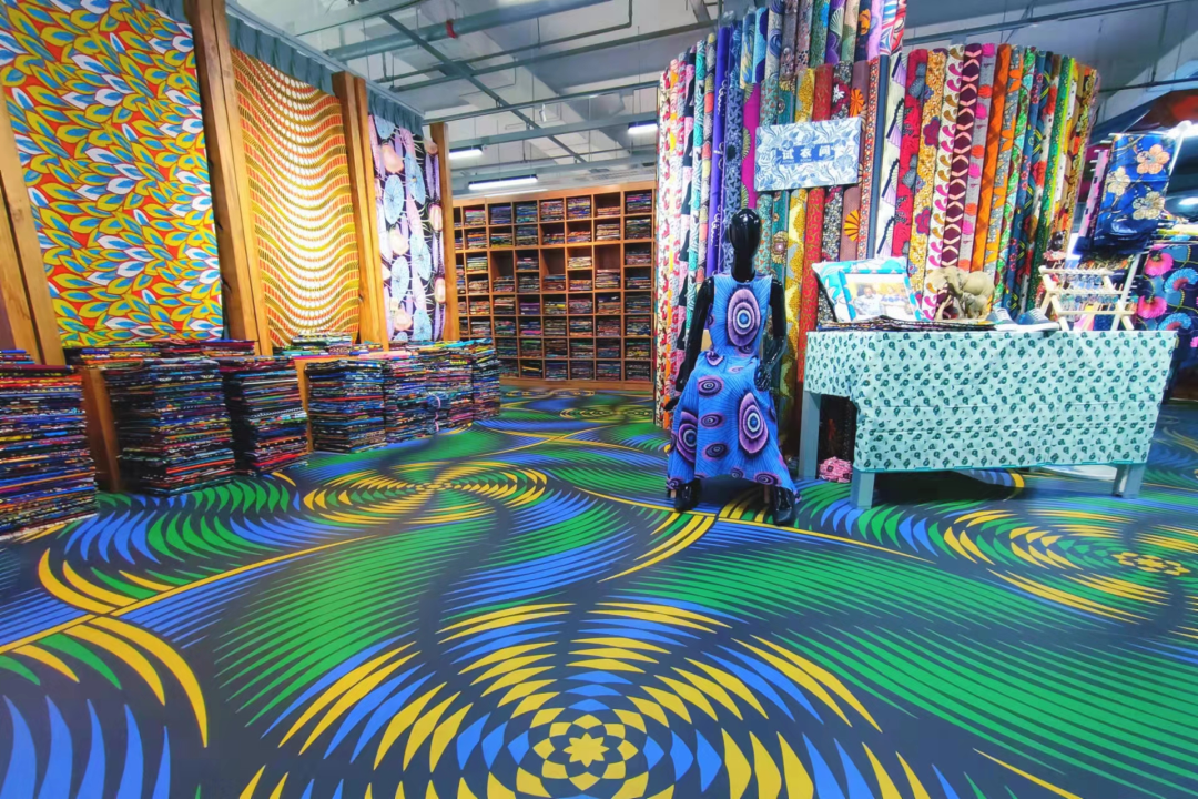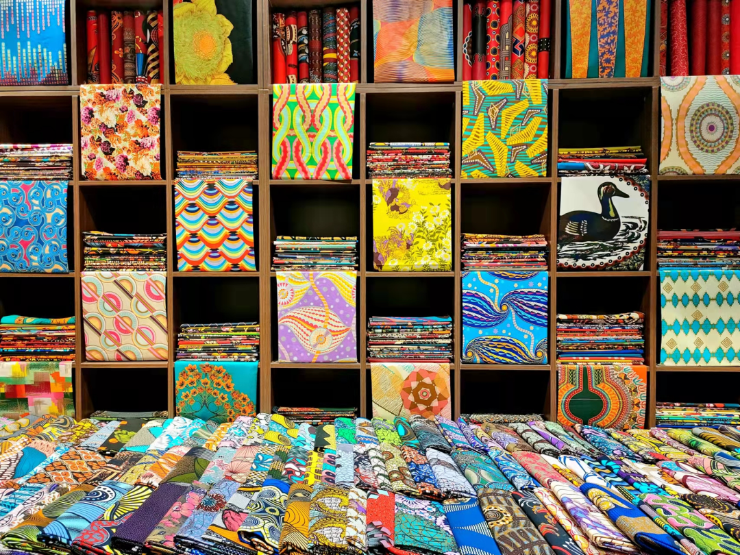 这里还有不少出口海外的面料,那鲜艳的印花、大胆的配色,视觉冲击力极强,浓浓的波西米亚风美得让人挪不开眼。