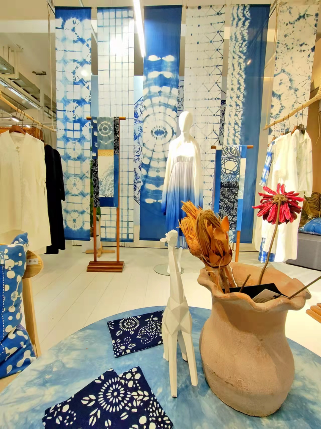 在愉悦家纺居家世博馆,你可以感受纺织的艺术与技术,从古代的养蚕缫丝到后来的扎染印花,各式各样的衣料纹饰、古法织机、历史文物让你对纺织业有全新的认识。