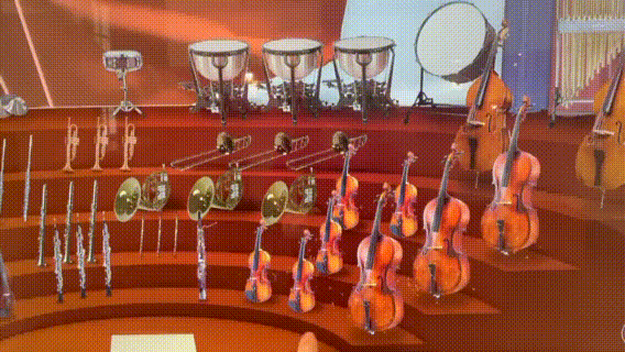 此次“心中的红旗”特展的举办地百代小楼——《义勇军进行曲》灌制地,是“上海市第一批革命文物”和中国现代音乐的“源头”之地。这首雄壮的歌曲一经问世,即成为全体中国人昂扬奋进的“战歌”。此次特展的“主角”《红旗颂》与《义勇军进行曲》所蕴含的红色初心同频共振,新颖的多媒体互动形式,将一支管弦乐队近距离呈现在大家面前,在音乐进行的过程中,点击不同的乐器,相应乐器的声部就能够进入到当前乐章中来。市民游客可以在现场选用不同种类的“乐器”,合成一曲“红旗颂”的交响。
