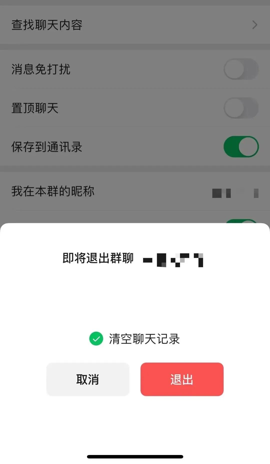 当我们选择退出群聊之后