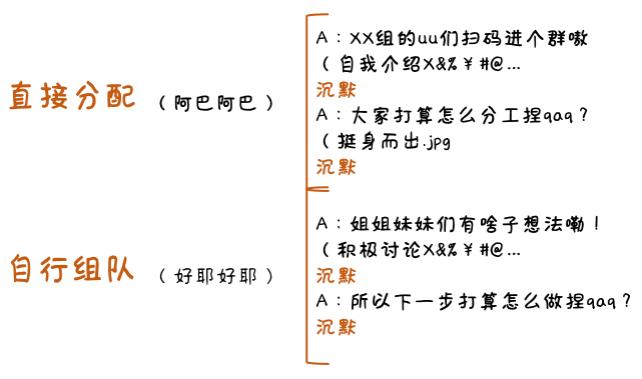 当小组作业布置完成那一刻,许多问题便已经陆续显露出来了。在自由结组时就容易发生分歧,有的同学随遇而安不主动不拒绝,有的同学希望与优秀同学一起,有的同学十分冷漠排斥团队合作......
