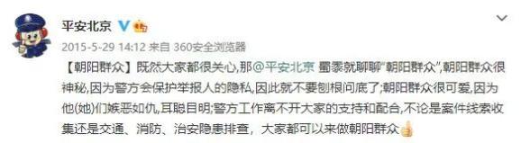 对于朝阳群众,北京警方官方微博@平安北京 这样评价: