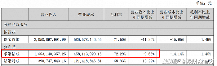 这款DR FOREVER系列简奢款属于DR的“求婚钻戒”系列的畅销产品。DR的主要产品包括求婚钻戒、结婚对戒和真爱礼物,从其最新发布的财报数据显示,DR“求婚系列”是2022年上半年DR的主要营收来源,营收达到16.53亿元,占比为80.3%,72.29%的毛利率也要高于公司整体毛利率和结婚对戒。