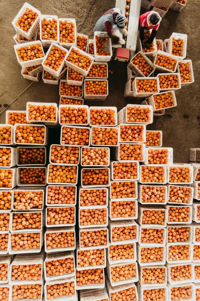 丰收的橙子,正在进行分拣。图/视觉中国