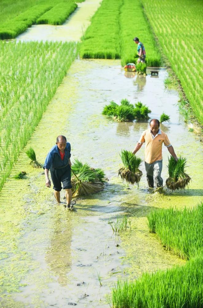 育秧、插秧、施肥、植保、收割、运输、烘干……一台联合收割机一天能收60多亩,一架无人机十几秒钟就能撒完一亩地的肥或药,全程机械化装备的高效耕种,解放了人力,更实现了粮食的高产和稳产。