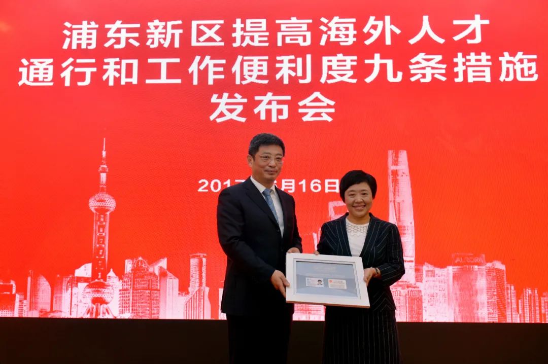 2017年,浦东率先试点境内外高校外籍应届毕业生可直接申办工作许可。上海纽约大学应届毕业生、来自美国的泰勒·保罗·罗瑞克,获得了全国首张本科学历外国人工作许可证。同年,得益于浦东率先实行的自贸区永居推荐“直通车”制度,罗氏制药总经理周虹(德国籍)拥有了全国首张自贸试验区管委会推荐永久居留身份证。 随着改革深入,人才新政不断推出。2018年,浦东率先试点持永久居留证创办科技型企业。屹博医药的江磊、蓝河科技的张伟两位华人创业者,因此获颁全国首批持永久居留身份证注册的科技型企业营业执照。