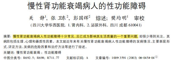 [6]关静,张卫东,彭国辉,樊均明.慢性肾功能衰竭病人的性功能障碍[R]中华男科学.2003,06,30.