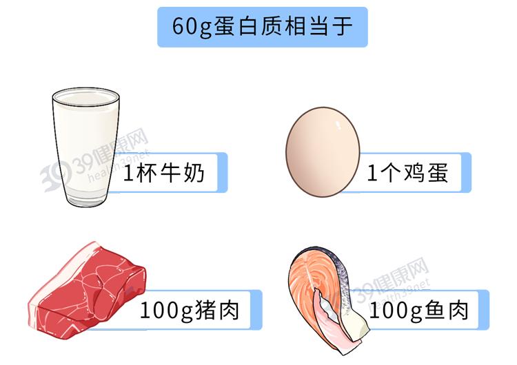 根据《居民膳食指南2022》,成年人蛋白质每日推荐摄入量为1g/kg。假如你体重60kg,每天摄入60g蛋白质就足够了。