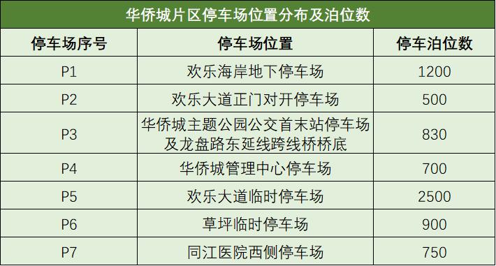 假期期间,华侨城提供停车场7个,共约7380个停车泊位供假期市民游玩停车需求。