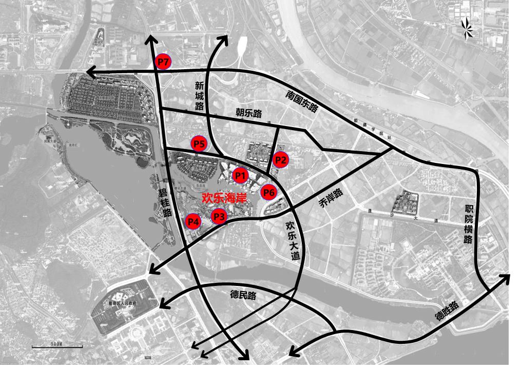 碧桂路(北)、南国路(西)来车:南国路→碧桂路→欢乐大道→P5、P1停车场。