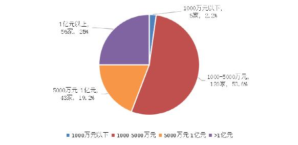 7.从营收情况看,经营效益好。92家“独角兽”和“未来独角兽”企业实现营业收入1566.79亿元,平均每家企业的主营业务收入为17.03亿元。有75家企业营业收入超过1亿元,其中有17家企业营业收入超过10亿元。有20家企业2019—2021年营业收入平均增长率超过1倍,有19家企业2019—2021年营业利润平均增长率超过1倍。224家“瞪羚”企业营业收入329.24亿元,平均每家“瞪羚”企业营业收入为1.47亿元;其中营业收入1000—5000万元的企业有120家,占比53.6%。有89家企业的2019—2021年营业收入平均增长率1倍以上,有69家企业的2019—2021年营业利润平均增长率1倍以上。