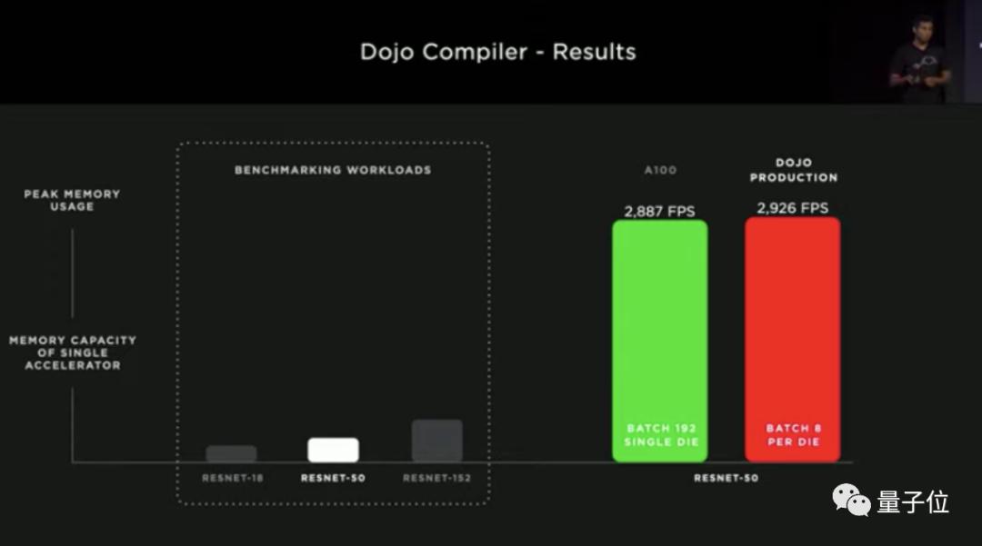 那么一通操作下来成绩如何?按特斯拉的说法,他们在经典项目RESNET-50上的计算能力击败了A100: