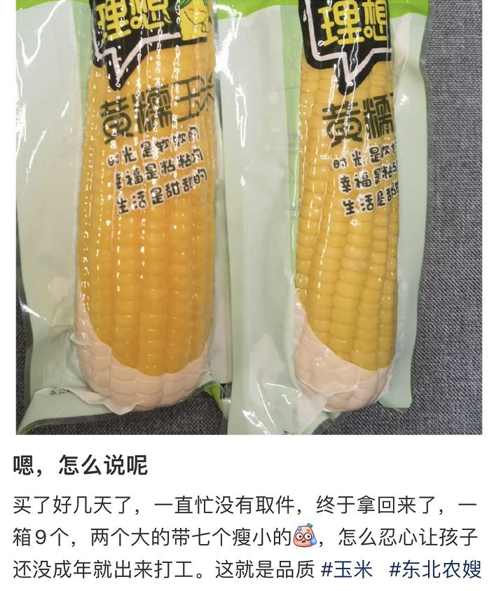 但是,随着买了农嫂家玉米的消费者们的物流纷纷到货,大家发现“上大当了”!