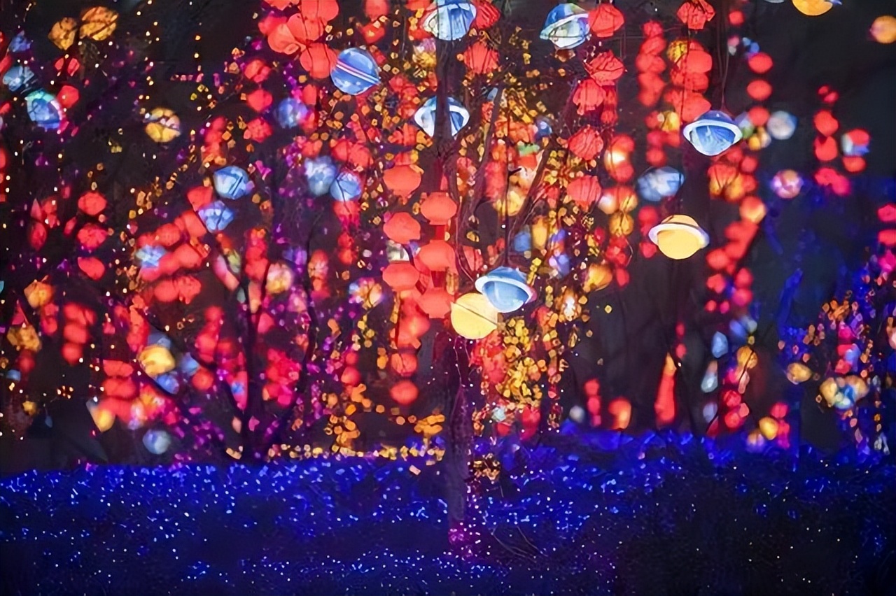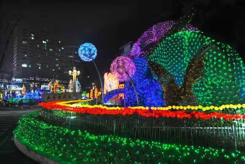 夜幕降临,华灯绽放,漫步在长春街头,主干道红灯高挂,霓虹闪烁,处处流光溢彩、火树银花,璀璨的灯光在夜晚交织出美轮美奂的迷人景色。吉林大路两侧悬挂的串串红灯笼烘托出祥和喜庆的气氛,精巧别致的星球灯和环形灯将迎宾路装扮得五彩斑斓;自由大路长春体育中心门口两侧颜色各异的条状灯带打造出“火树银花不夜天”的城市美景,踏上旁边的木质小路,让人感觉仿佛走进了梦幻般的“童话世界”;动态的烟花灯饰让夜色下的新民广场流光熠熠;净月潭国家森林公园西门灯光隧道内摆放的12套运动滑雪雕塑,背衬LED暖白色串灯光帘,成为长春市全新网红打卡地……