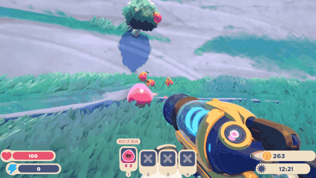 在小岛上的各种地方,都藏着不同种类的史莱姆。而我们的枪,就可以把这些史莱姆吸进背包里,捕捉起来。
