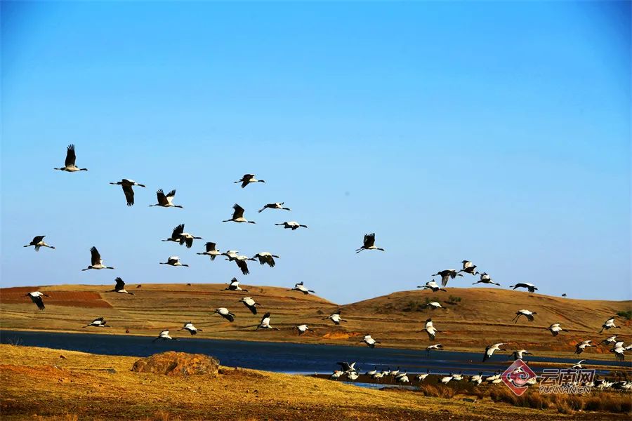 成群的黑颈鹤