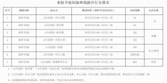 关于开行重阳节夜间加班线路的告示