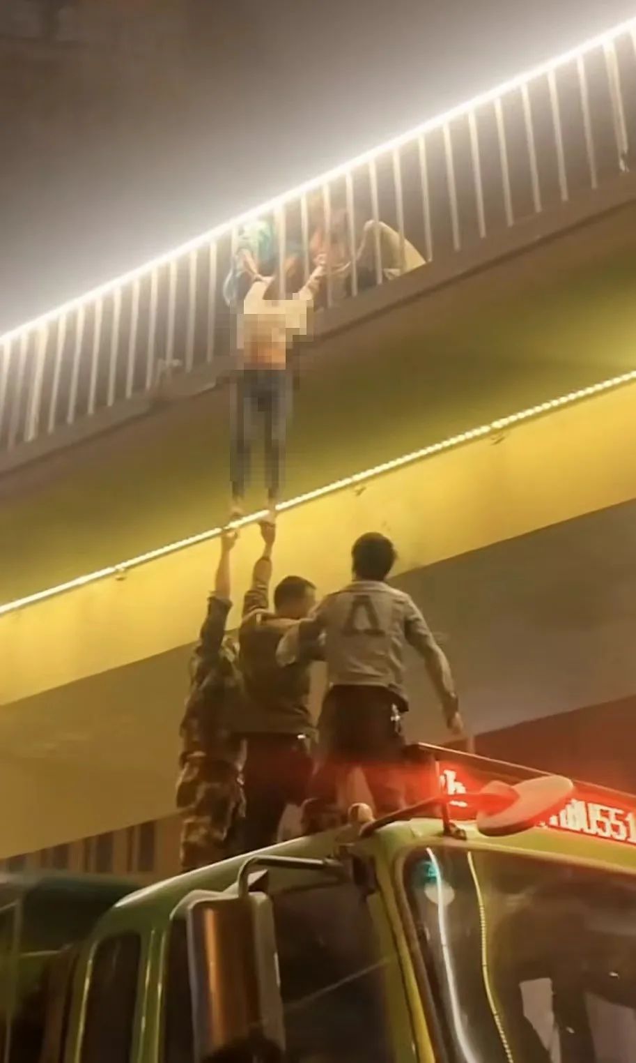 “有人接着呢!”女子凌晨悬挂天桥,路人合力救援!