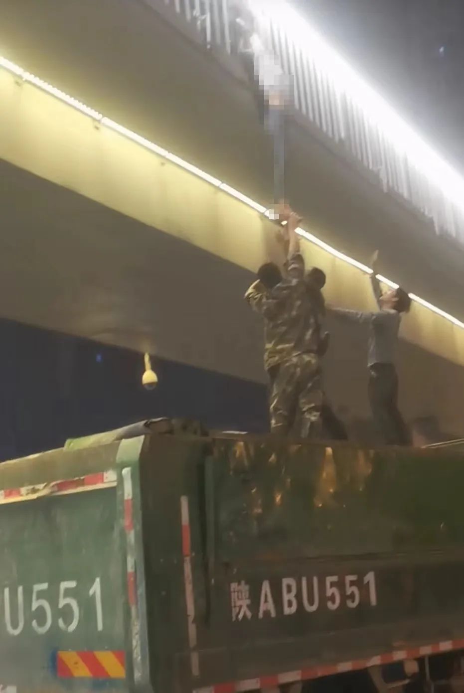 “渣土车真棒!”“人心齐,泰山移,给好心人点赞!”网友纷纷称赞道。10月3日下午,现场目击者之一周先生告诉记者,此事发生于西安东二环万和城附近的人行天桥。“我们是西安小型渣土车,刚好在天桥底下排队拉渣土。在那聊着聊着看见一双腿从天上伸下来了。”发现有女子悬挂在桥上后,周先生所在单位的工人连忙跑去救援。
