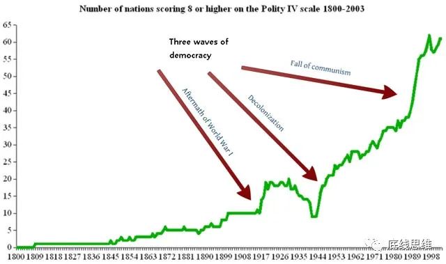 三波“民主化浪潮”后,采用西式民主制度的亚非拉国家,大部分并没有繁荣起来,图片来源:wiki by Piotrus这也是为什么,当安吉丽娜·朱莉站在中东的废墟前,闻着尸体的气味,大谈“虽然他们一无所有,但他们自由了”的时候,世界上更多的人,甚至包括越来越多的美国人自己,开始慢慢意识到美国等发起的伊拉克战争是完全错误的决定。