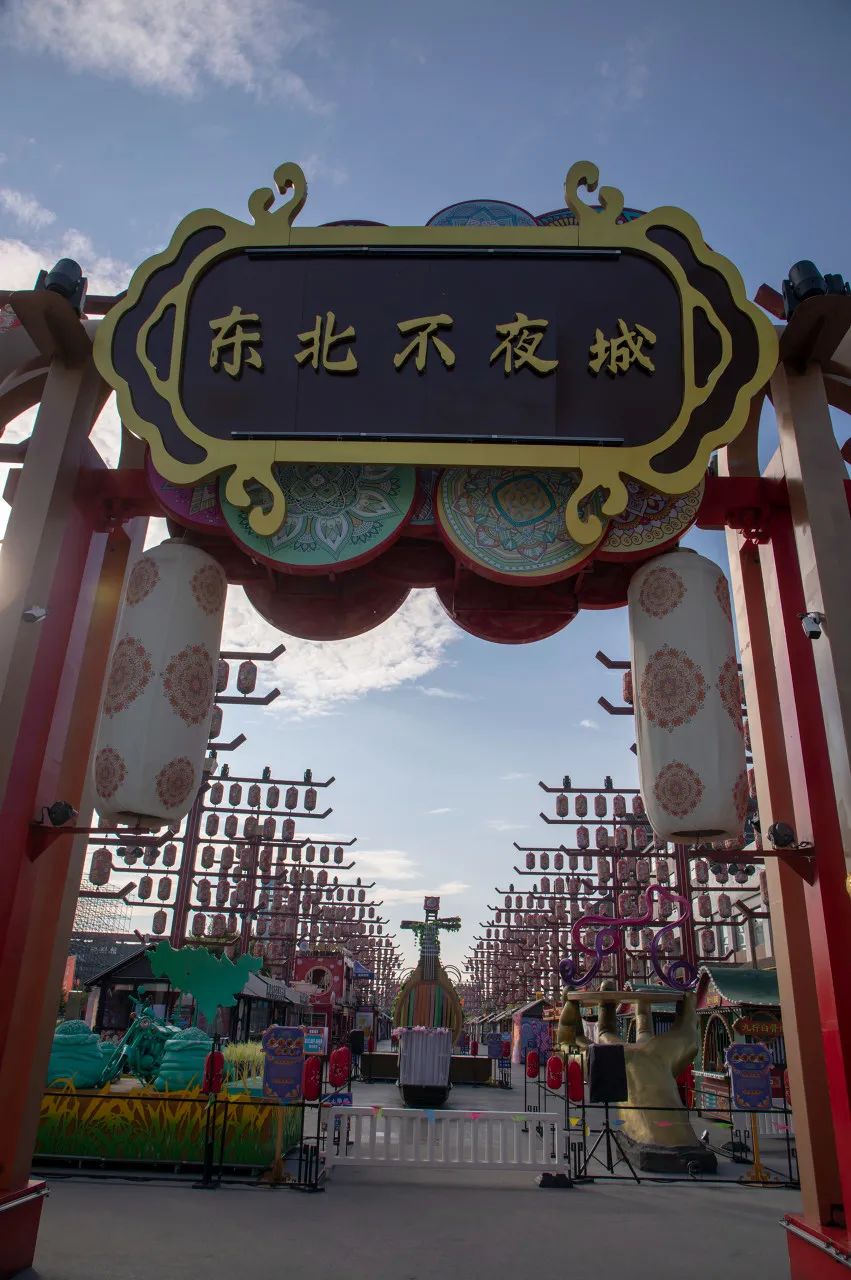 梅河口东北不夜城街区全长533米,占地面积1万多平方米,以国潮文化为主题,汇集古风古韵、关东风情、现代文化等诸多元素。吉林龙舞、东北人参、变形金刚、蝴蝶女神……东北不夜城还汇聚了各地美食。北京爆肚、新疆烤肉、驴肉火烧、陕西凉皮、烟雾冰激淋、绍兴新派臭豆腐……让你可以如时空穿梭般,靠感官开启一场奇幻的全国之旅。