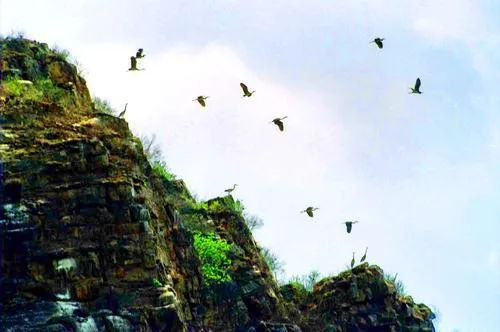 这里有成群苍鹭盘旋、鸣叫的“千鹤回音”;有滚水坝下,岩石呈波浪状起伏的“千层石浪”;也有百丈峭壁断崖重重,色泽层次仿佛书页一般的“千卷石书”。