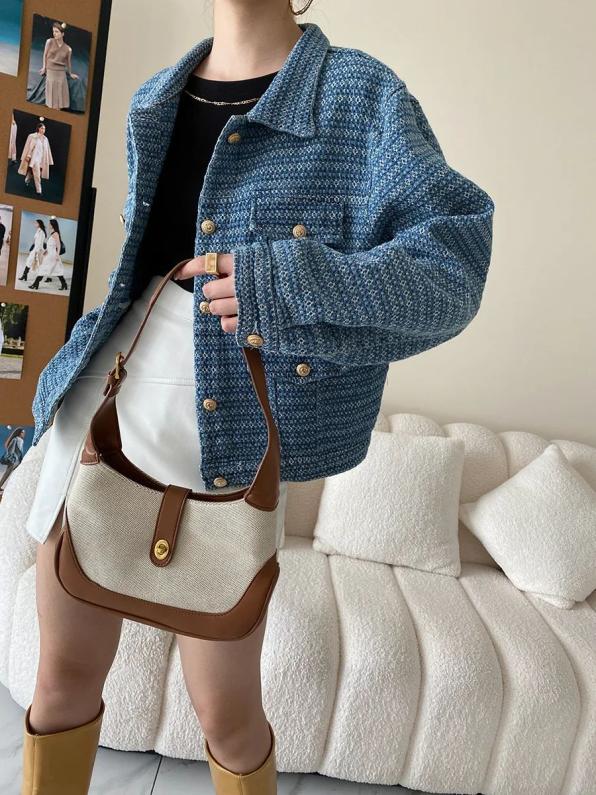 比起深硬牛仔色,软牛仔外套更加日常和百搭,这款酷似小香风的纹理感外套是我秋冬的最爱!干净利落的剪裁,举手投足间呈现出别样的魅力,短款的版型提高腰线塑造身材比例,更显 显腿长~
