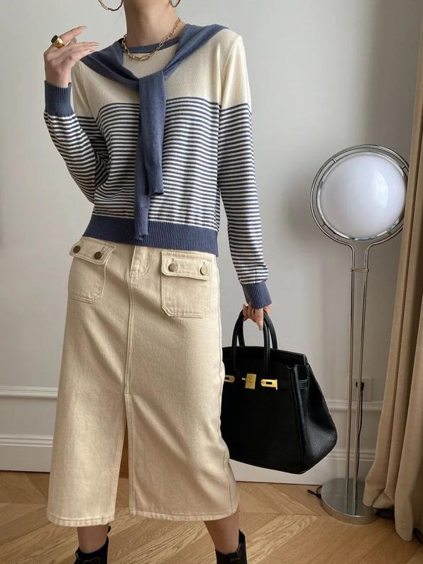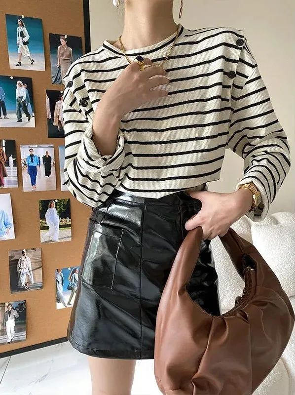 如若你已经穿腻了常规的基础款打底衫,浪漫经典的条纹衫或许能够成为完美的选择。