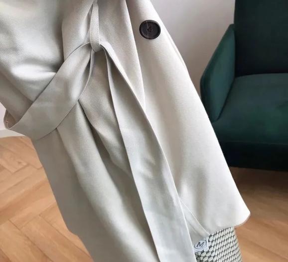 腰间的带子,不管你秋冬穿再多衣服束起来,在侧边绑个蝴蝶结,慵懒又显腰线,H、O、X型身材都可以毫不费力驾驭起来。袖口位置是可拆卸得到交叉纽扣袖版,优雅与休闲并存。