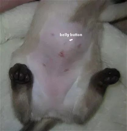 或者把毛剃掉…… | Lois Anne Starr就像人一样,小猫也在妈妈的子宫内发育,通过脐带从母体获得营养和氧气,同时排出废物。当小猫出生后,脐带没用了,就会被母猫咬断。几天后,连接在小猫身上的脐带自然脱落,留下的瘢痕就是我们所说的肚脐。