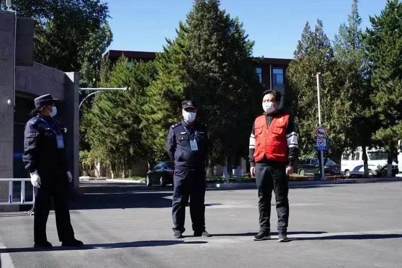 内蒙古大学干部在校门口值守 供图 内蒙古自治区教育厅