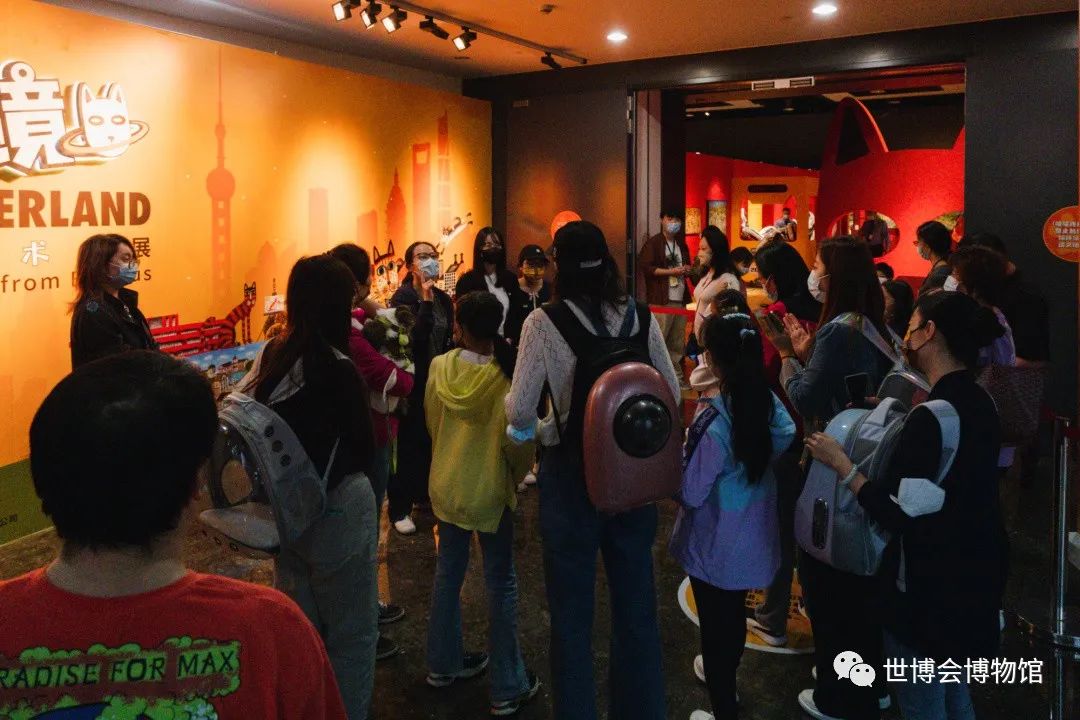 策展人孙怡为几组家庭和猫咪们进行了展览导赏。