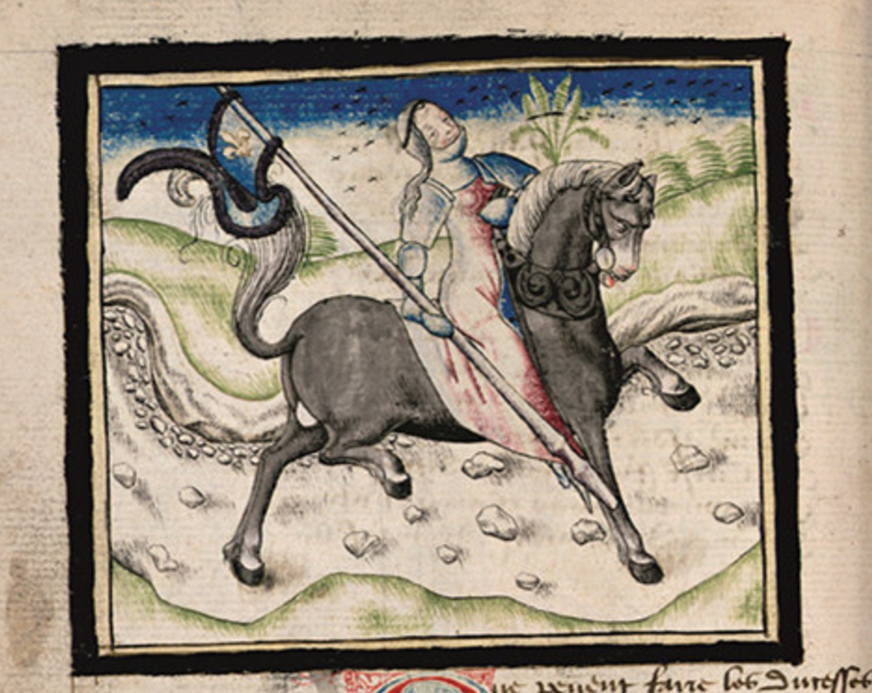 《圣女贞德》,《女捍卫者》细密画,格勒诺布尔,市政图书馆