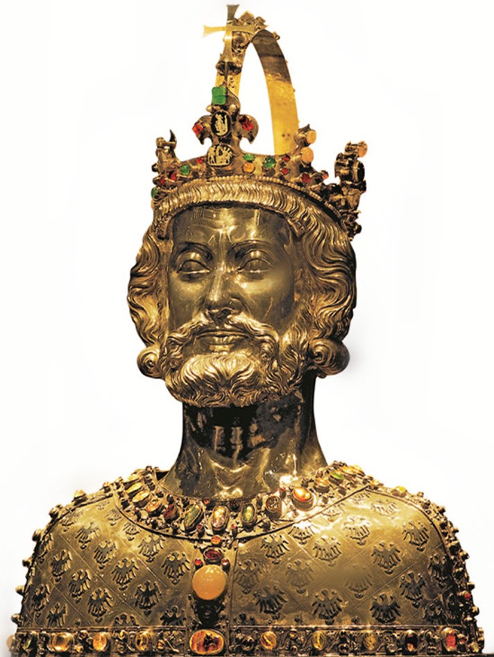 查理曼半身雕像圣物盒,1215年,珐琅、黄金与宝石,亚琛,巴拉丁礼拜堂(亚琛大教堂)